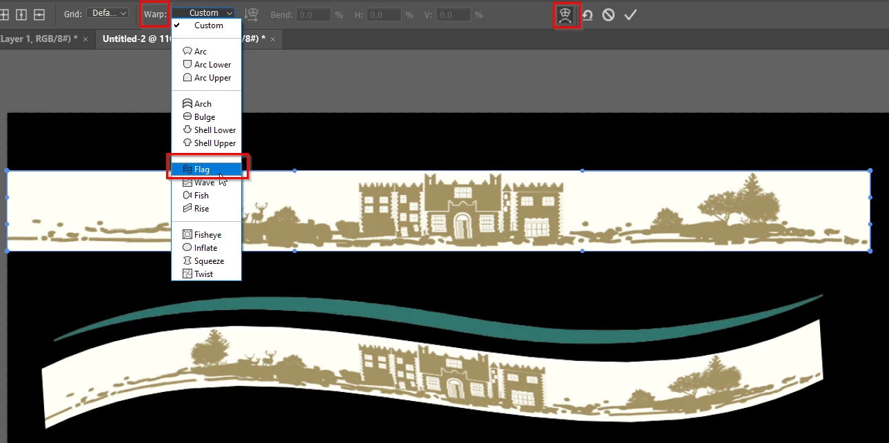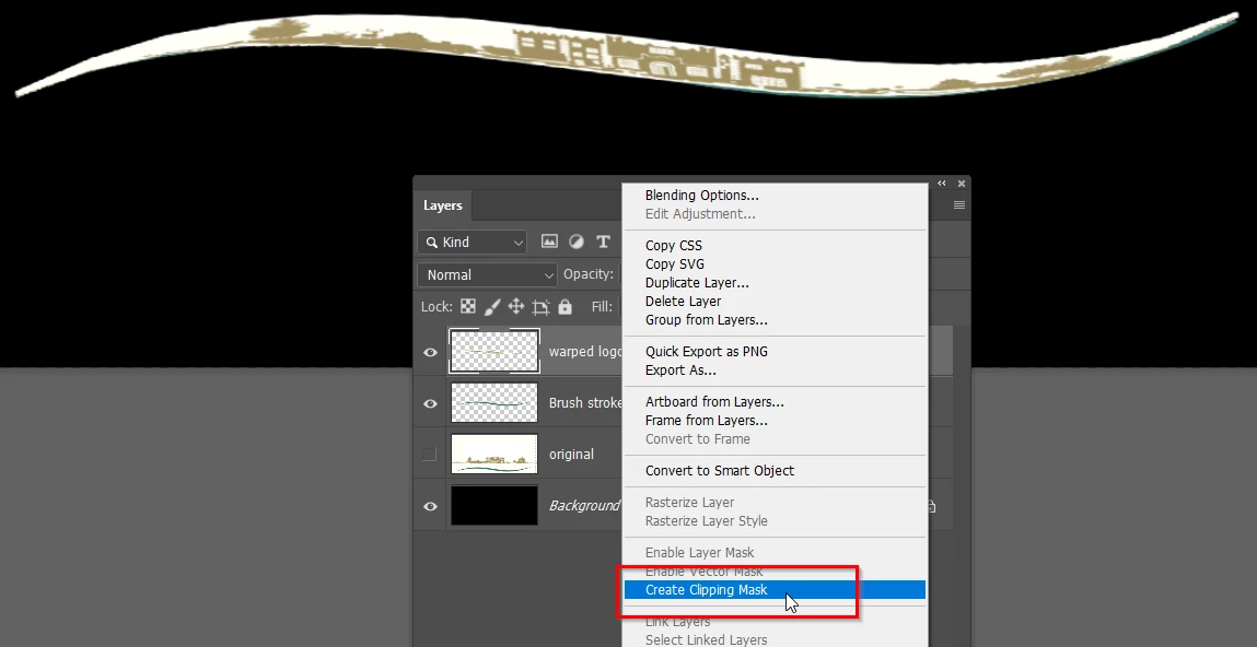 How can I curved this logo around the smae path of this line without getting distored? I have looked online for a few hours cant find any videos on Youtube