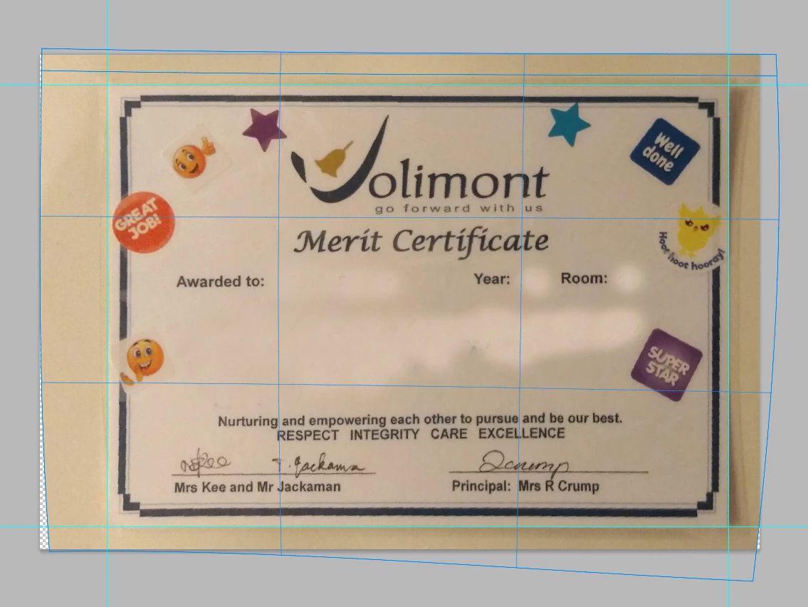 How to straighten curved edge of a certificate in a photo of the certificate