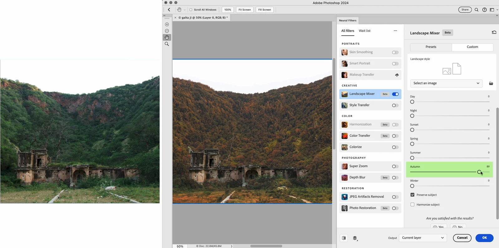 I am taking what is mostly picture taken at Summer, with lots of green (leaved) trees, and I want to turn it into fall. I can turn green into red easily with a hue/staturation layer ~BUT~ I'm having a difficult time turn green into yellow.