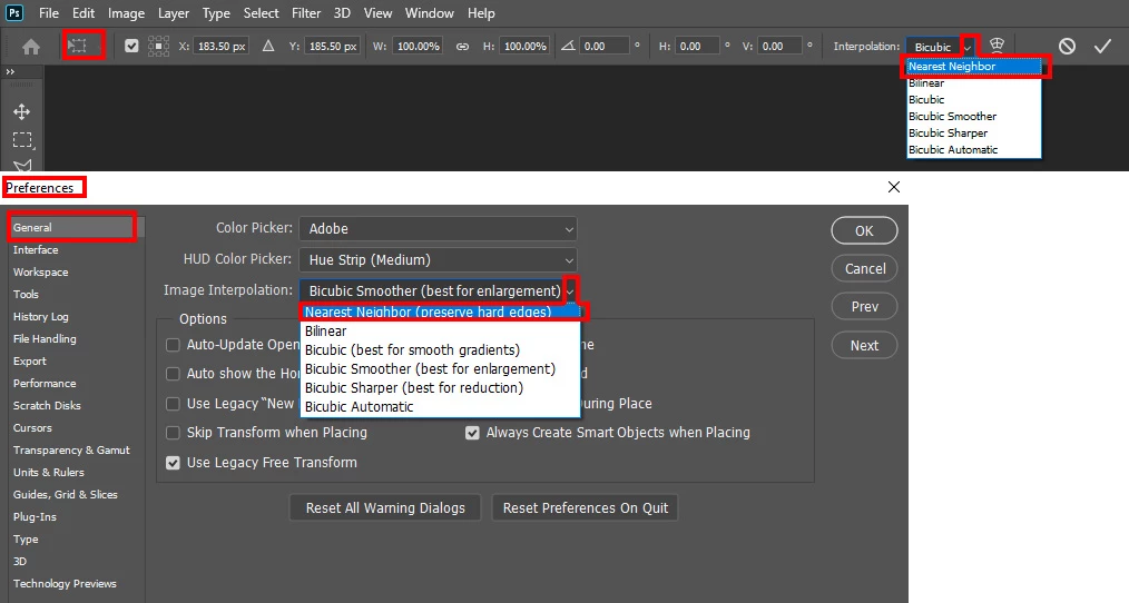 So I'm working with some PNGs of video game sprites. When I enter transform mode the image looks great in this context, big clean pixels that suit the sprites well. But confirming the transformation, everything looks much softer. The file I'm working with is a non-rasterised and enlarged PNG, Comparison below first image is confirmed transformation, 2nd being whilst in free transform