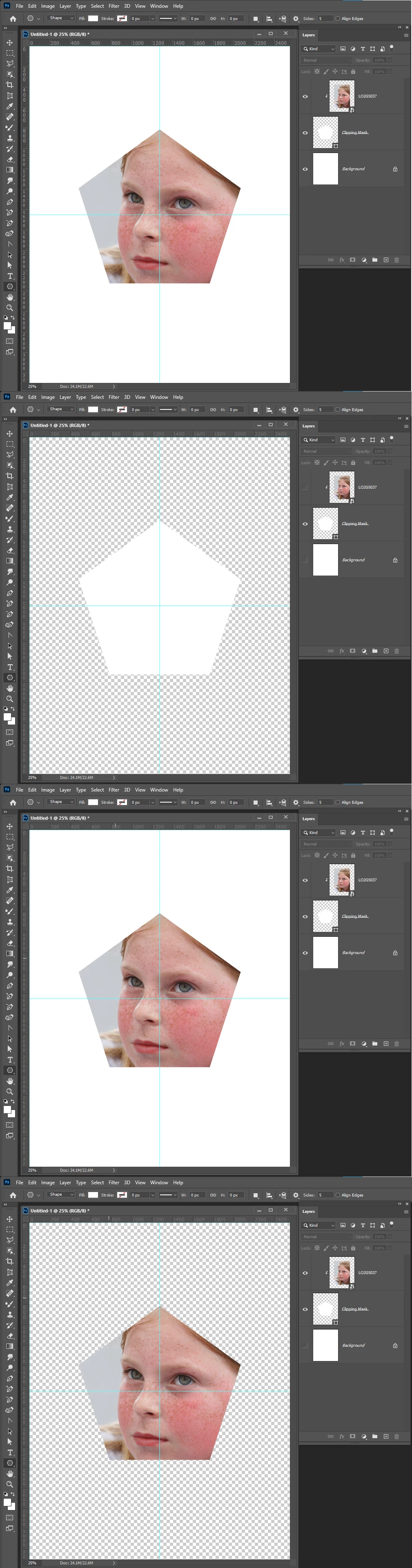 Is there a way in photshop to view only the "clipping mask" and hide other layers (inlcluding the clip layer)?