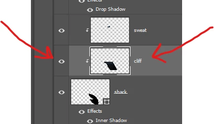 hi, thank you for replies. What I mean I only want to see the clipped layer (red arrow) and not any other layer (like Shark or Sweat).