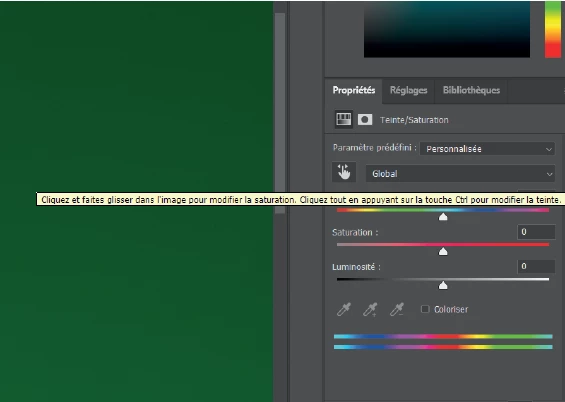 I used a "Hue / saturation" effect. With the hand tool, I selected the green color (the background), and I increased the saturation (image 1). After that, I think a mask layer was created on my effect (image 2). The white zone is the background selected with the hand tool.