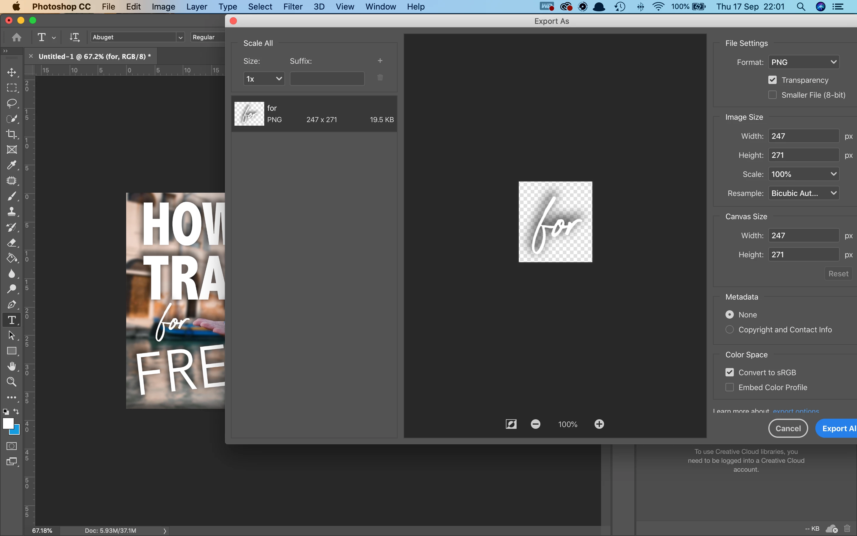 Secondly, I cannot seem to just simply export my entire image, it is only for some reason selecting a single layer to export... I want to export the whole image not the word...