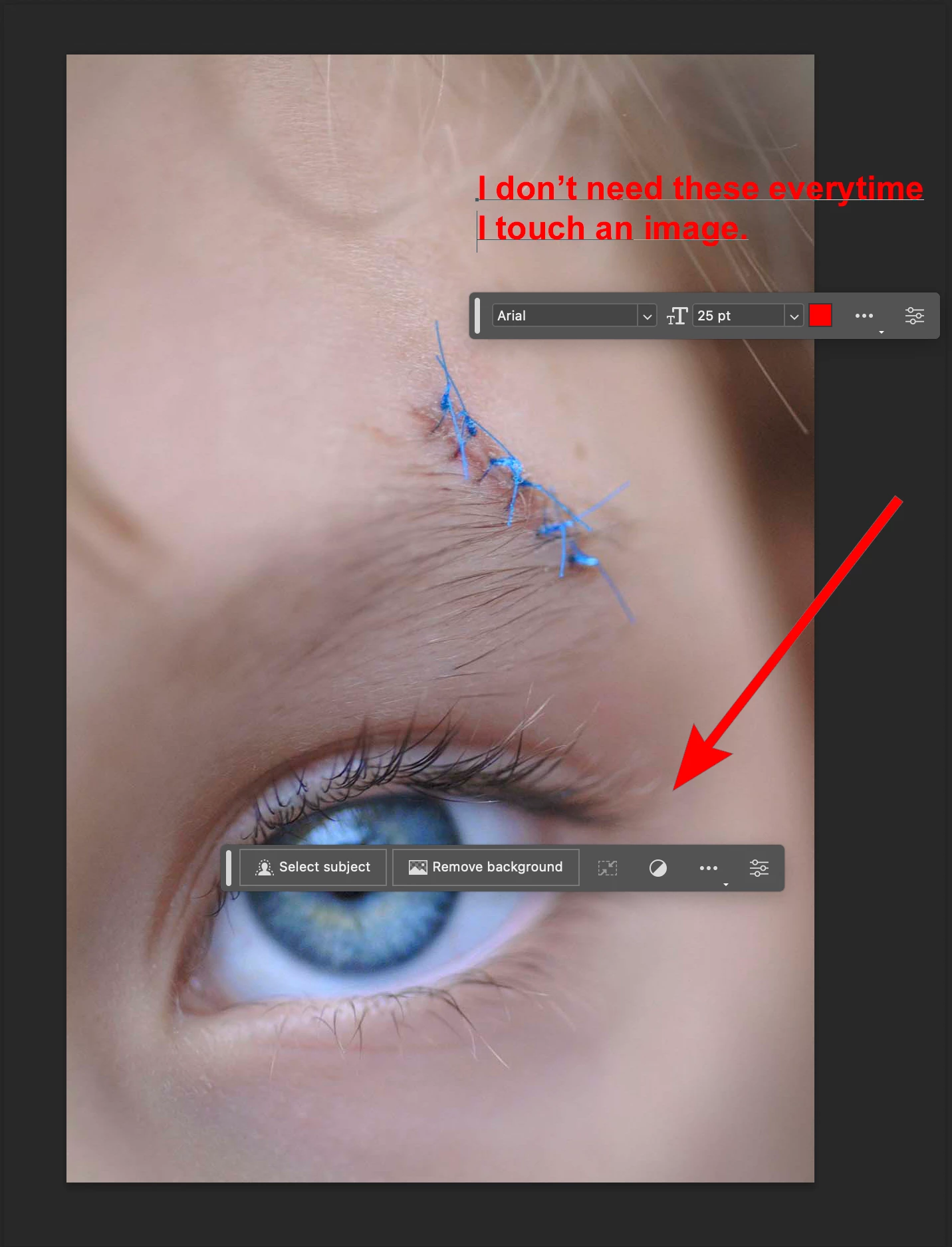 I am trying to find out how to turn off select subject/remove BG pop up in photoshop 2023.