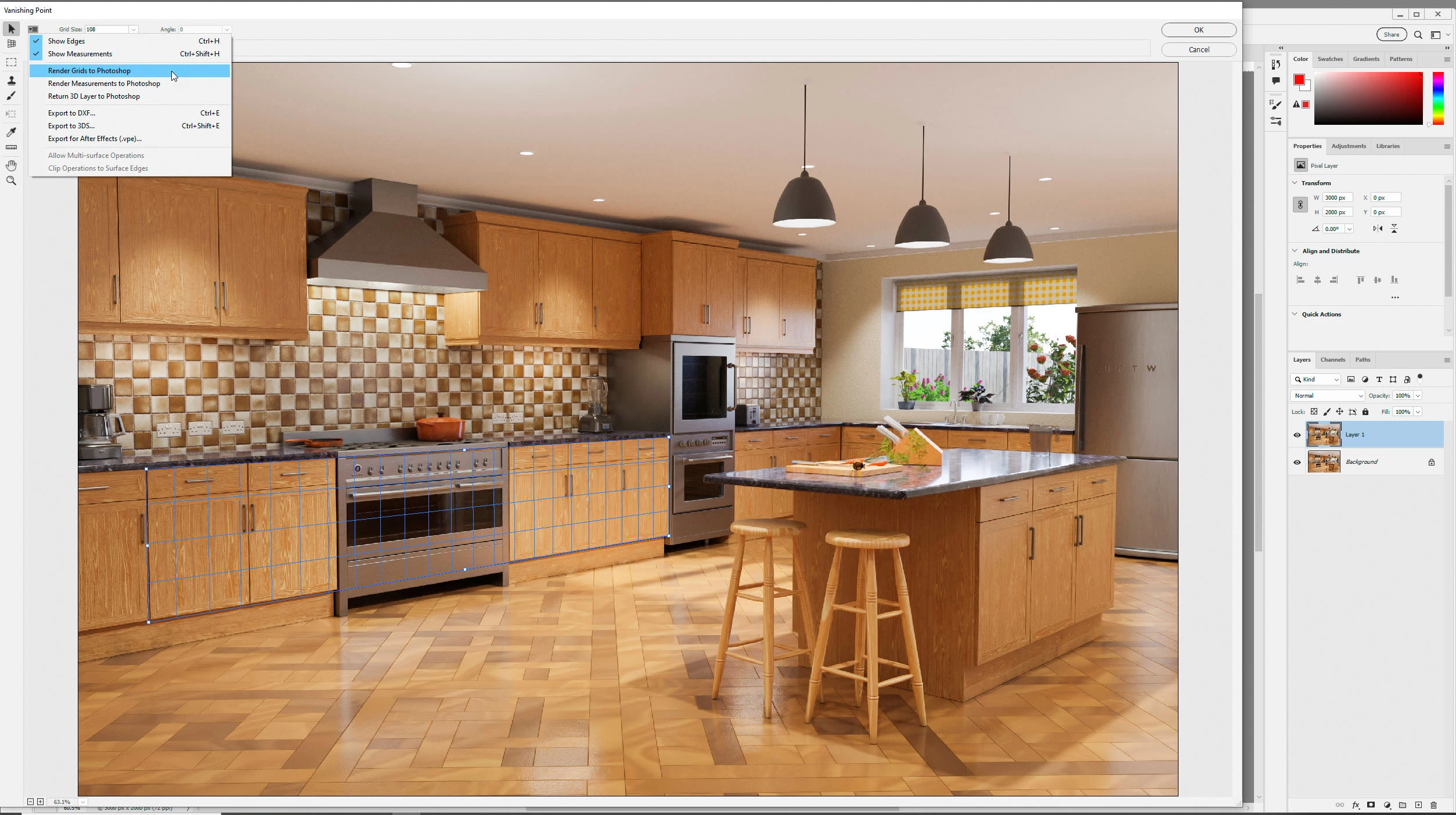 I can no longer render grids to photoshop in vanishing point. I've been unable to do this for a very long time. I'm using an imac 3.3 GHz 6-Core Intel Core i5 version 12.3.1 (Monterey). AMD Radeon Pro 5300 4 GB. Photoshop version is 23.5.1. Please help.