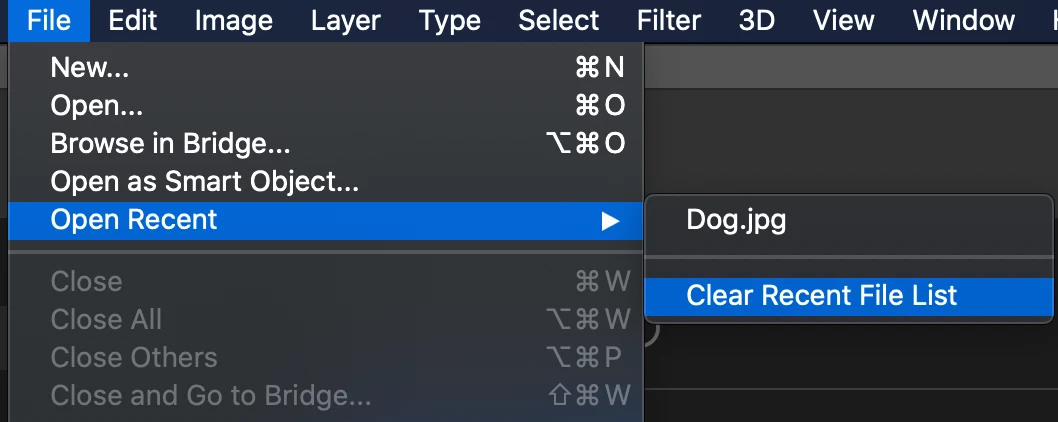i can't delete recent documents in photoshop cc
