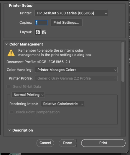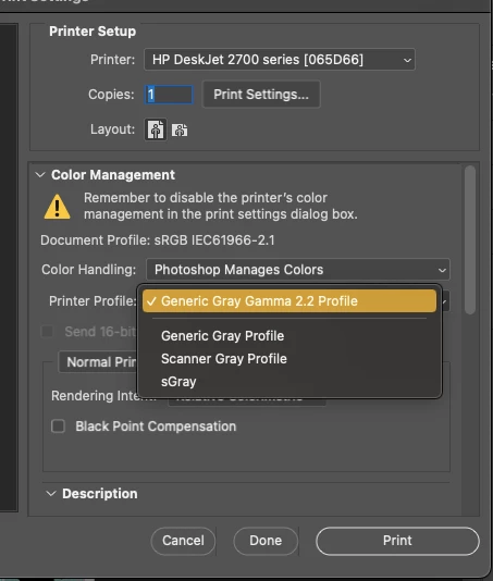 I can't print in color from Photoshop