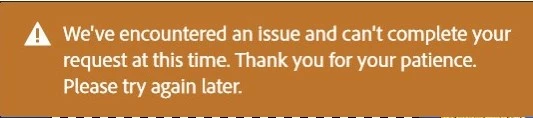 I cannot use Generative Fill on Photoshop 2024. The message has shown "We've encounter an issue and can.'t complete your request at this time. Thank you for your patience. Please try again later". I have already update latest version.