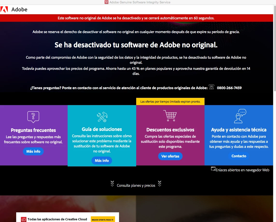 Today I opened Ps to start working and a Pop-up show up telling me that i dont have a genuine software. I went To creative cloud to check this out. I pay fot the Photographic Plan, and everything is ok, nothing is wrong with my subscription, but i cant work with Photoshop because this pop up keeps showing up and closing Ps after 60 seg. I already ask to Adobe support with no answer, does anyone have the same problem!?
