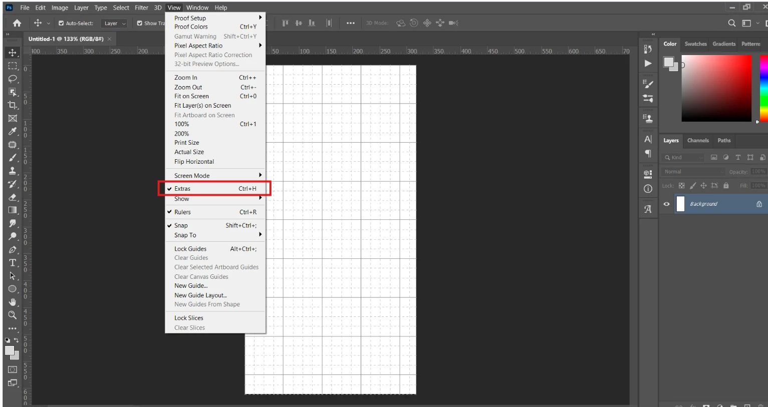 During the time working i accidently press "Extras" function shortcut(Ctrl+H) so i turn it off right away but now every time i open files from photoshop my view always auto turn on Extras view how do i turn it off without reset workspace preferences