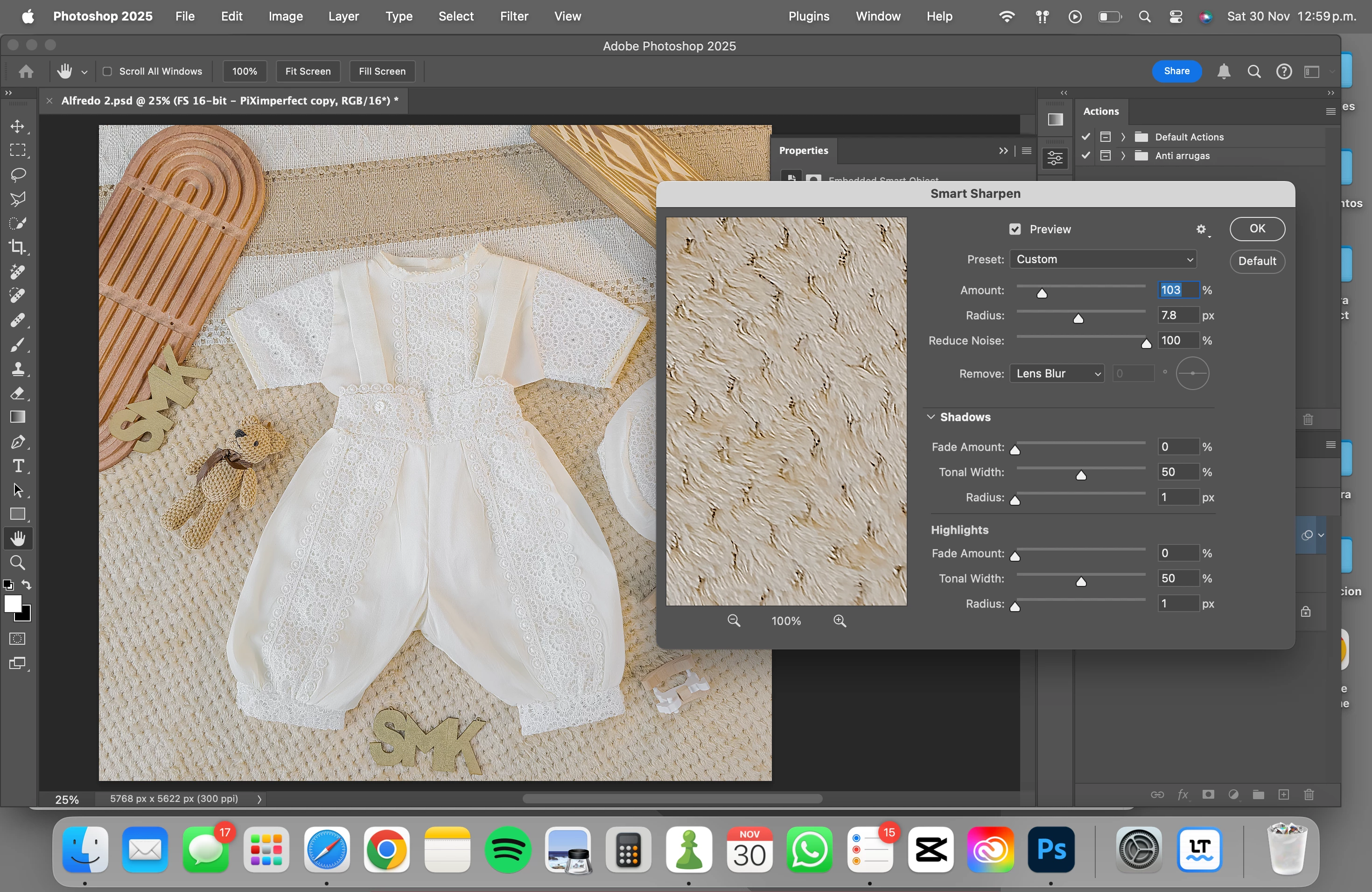 I have uploaded the images, first is when I preview and second is when I applied the smart sharpen