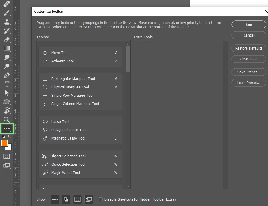 i just started using my photoshop on my computer , realized there is no stamp tool, magic pencil or many more tools on my side tool bar?