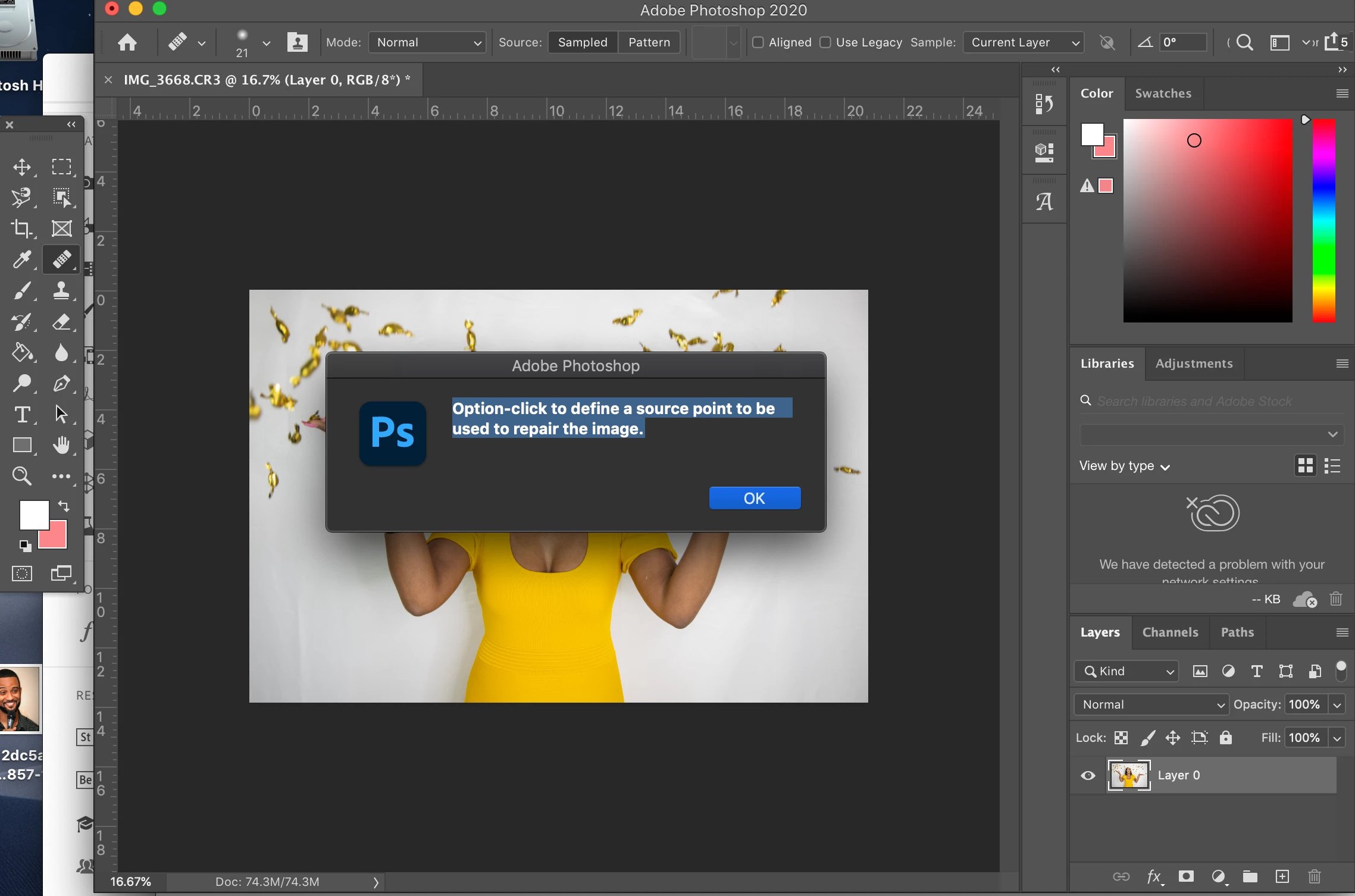 Hi, first you need to select the part you want to sample. To do this, hold down the ALT key on your keyboard and then click the mouse to take the desired sample. Once this is done, apply the sample you have just taken to the desired point.
