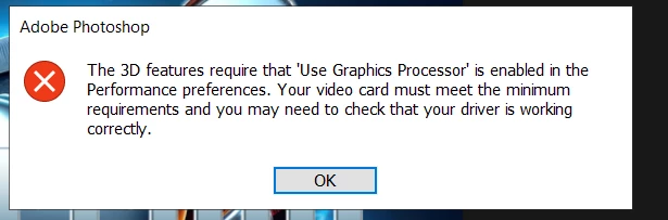 I'm encountering issues with Photoshop's 3D features.