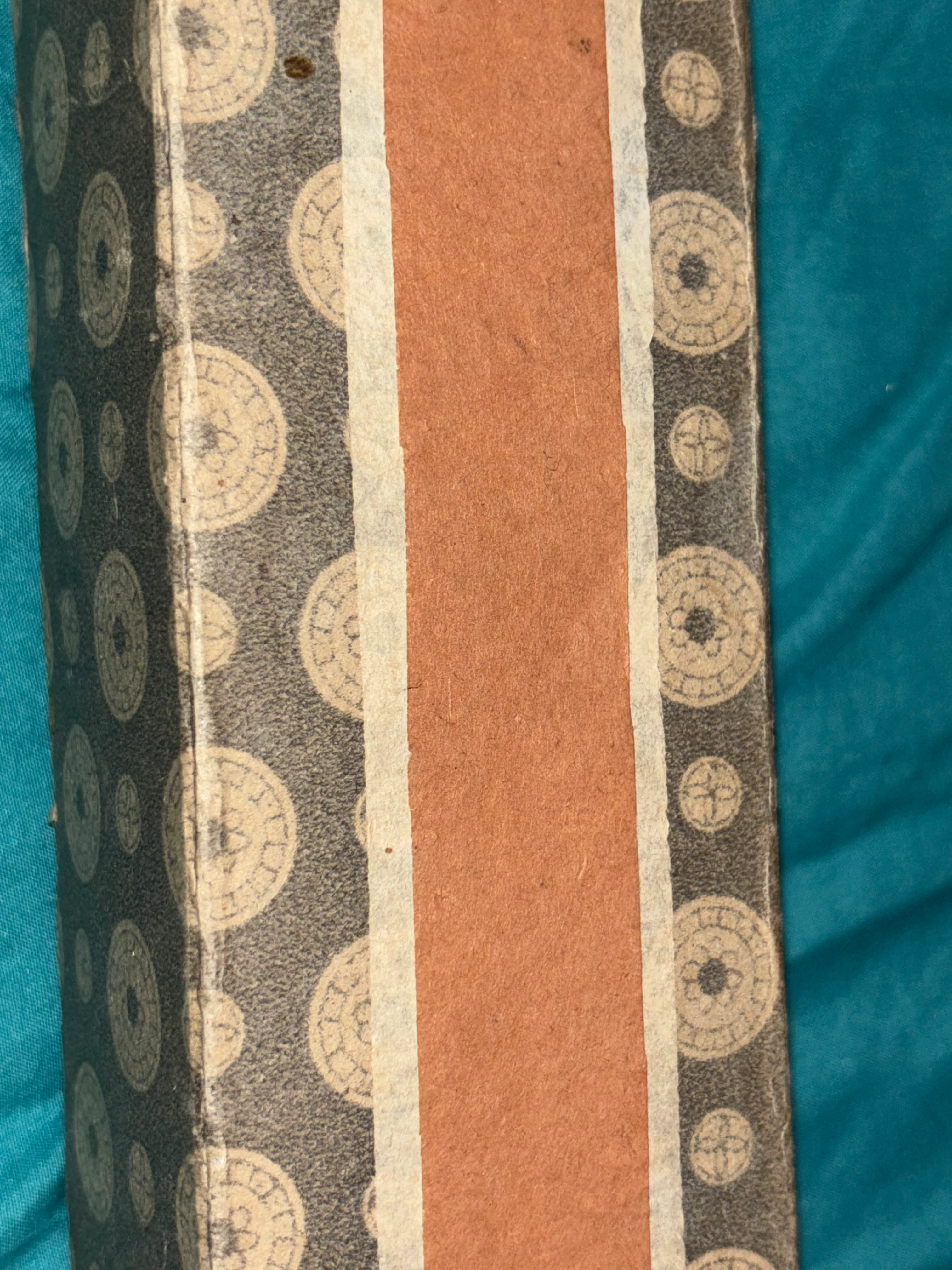 The scroll has been in the box almost this entire time and before. I never really asked too many personal questions, since she was hard to understand...but she gave it to me on my 1st birthday after marrying Jim. It's had the label I guess as soon as they were invented, and the box too....I don't know. I had on the wall for a short time, but I started having 2 small girls and I it was so ancient and beautiful I took it down...I could just see one of them ripping it down falling or something. So, it's been back in the box for 40 years in the closet thru a few moves and a divorce.