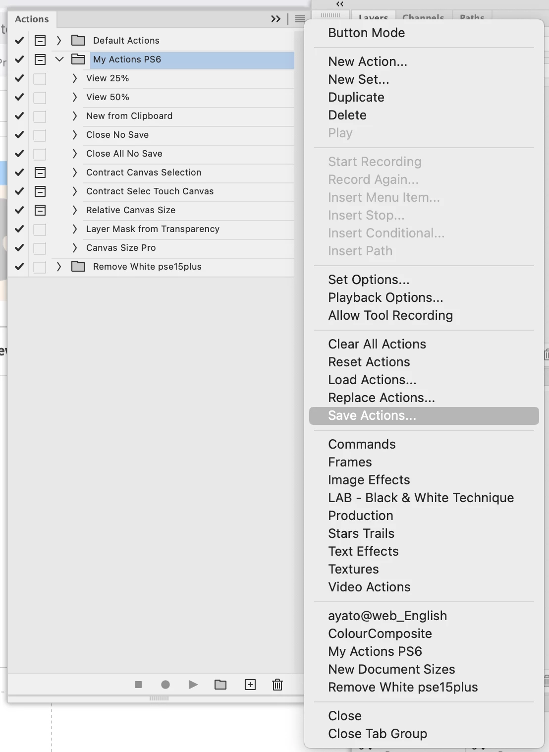 which is where you to save or copy the actions to in order to see them listed in the Actions panel