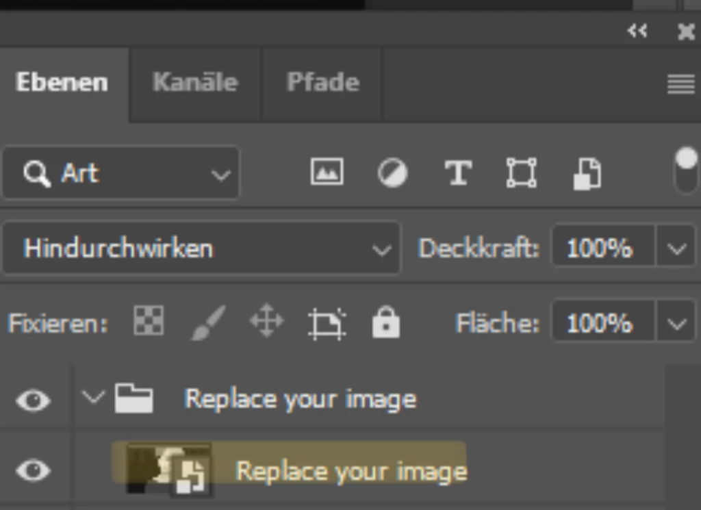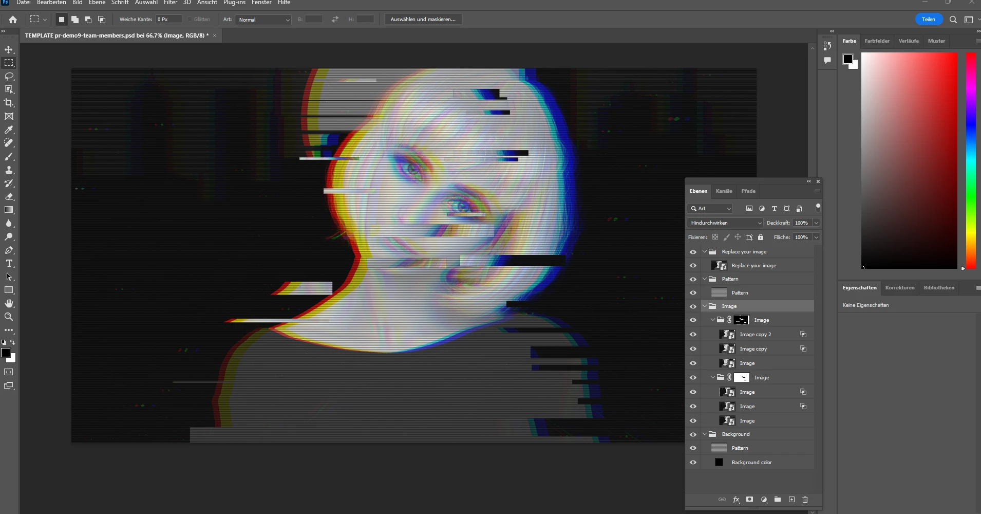 This is also where I got this template from. It's about staging the team members of a radio show with a certain filter. I would like to use my own image instead of the lady's image and keep all the effects.
