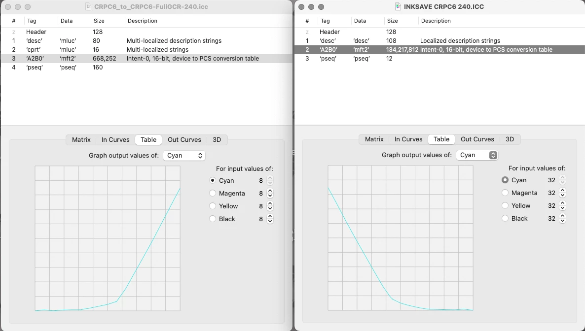 The CMYK ICC DeviceLink profile is created but, the OUTPUT curve are inverted.
