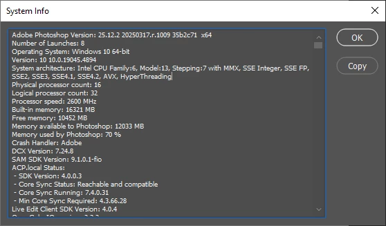 My photoshop version