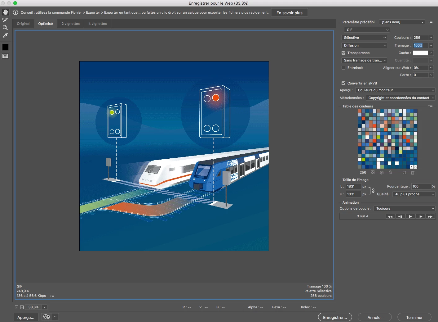 I need to turn this illustration into a GIF but as soon as I finalize the web exportation, it becomes blurry and the quality is damaged.