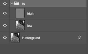 2. Select the Low frequency layer and use Filter Gaussian Blur (around 6.0)