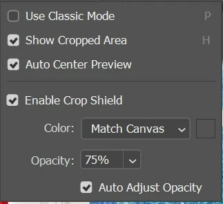 Adobe’s recent update to Photoshop changed how Image > Crop displays on my screen.  The old version (for the past 20 years?) automatically collapsed (resized) the project window around your new (smaller) cropped area.  So if you're working on a project whose canvas was 1200 x 1200 pixels, and you cropped it to 600x600, then Adobe used to automatically shrink the window frame to 600x600.