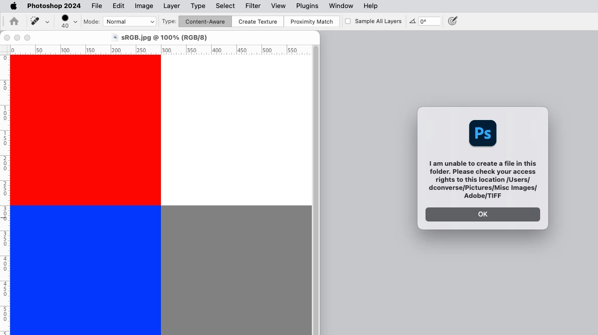 Bridge and Photoshop both have Full Disk Access. All files are on the internal drive. Not having problems with any other functionality in Photoshop.