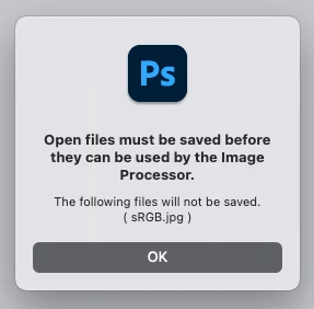 Message: General Photoshop error occurred. This functionality may not be available in this version of Photoshop.