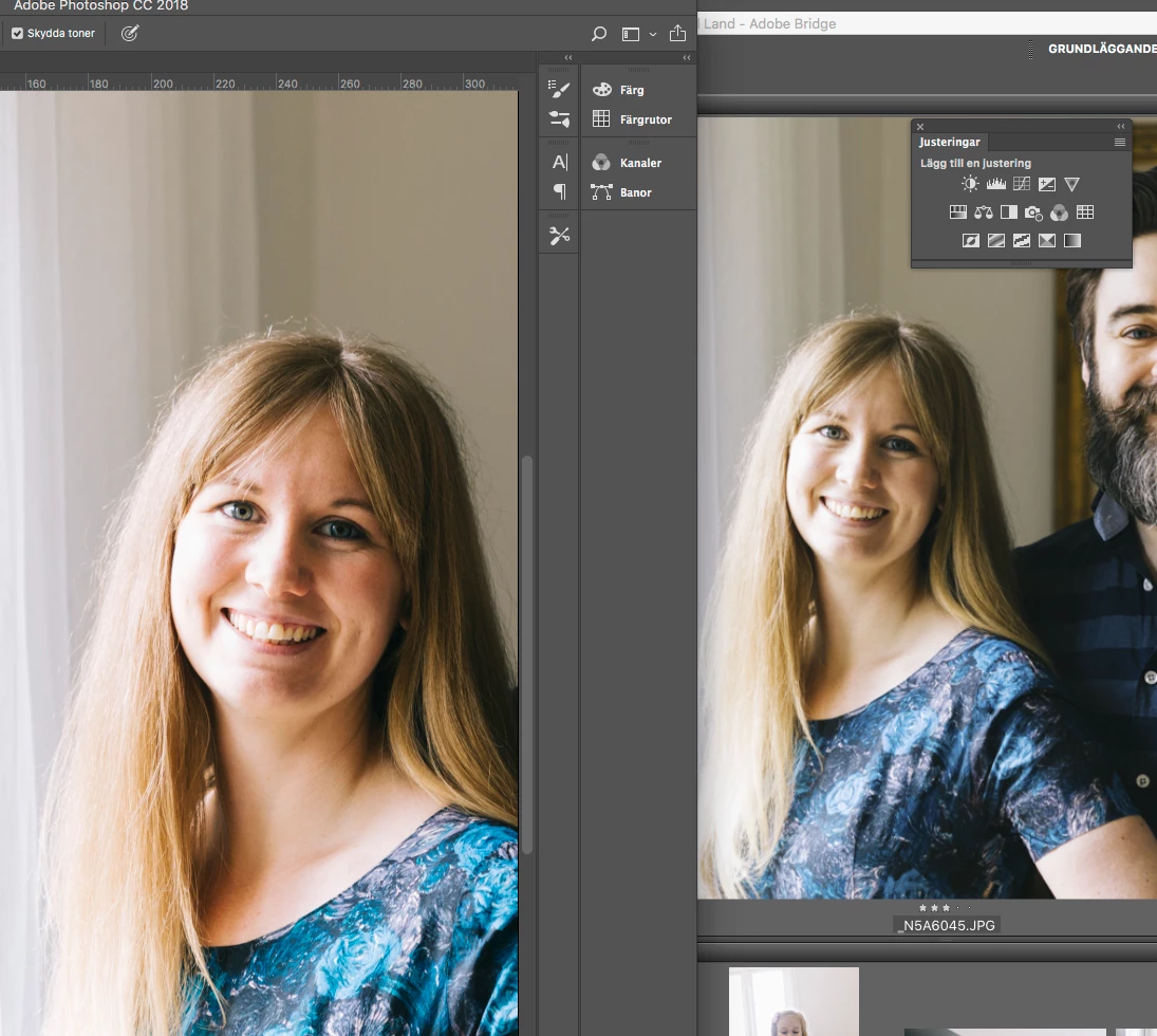 Ok, what the heck is this? Screenshot below is of jpg image, shown on same monitor. To the right in bridge, to the left in Photoshop. Which one is correct? I´ve been looking in settings but haven´t found anything that I think would change anything. Please help! Latest versions of all programs, using Imac but Eizo monitor for image work.