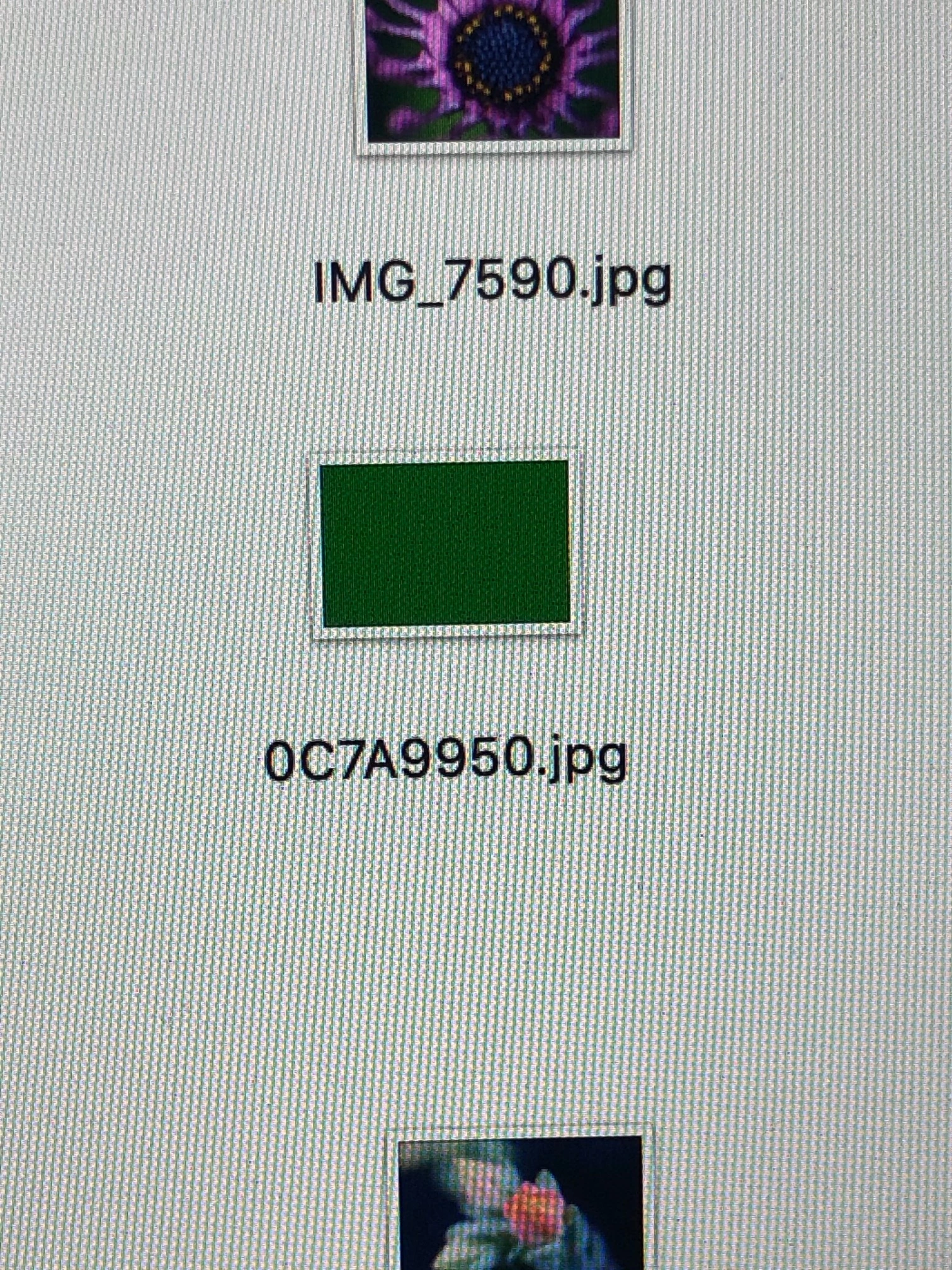 When I am saving images from photo shop to folders on my mac sometimes they appear as a pure green image on the folder. The filename is correct but the image is all green. Also sometimes on the icon only half an image appears. When you open the icons the images appear as normal. Not sure what the problem is..