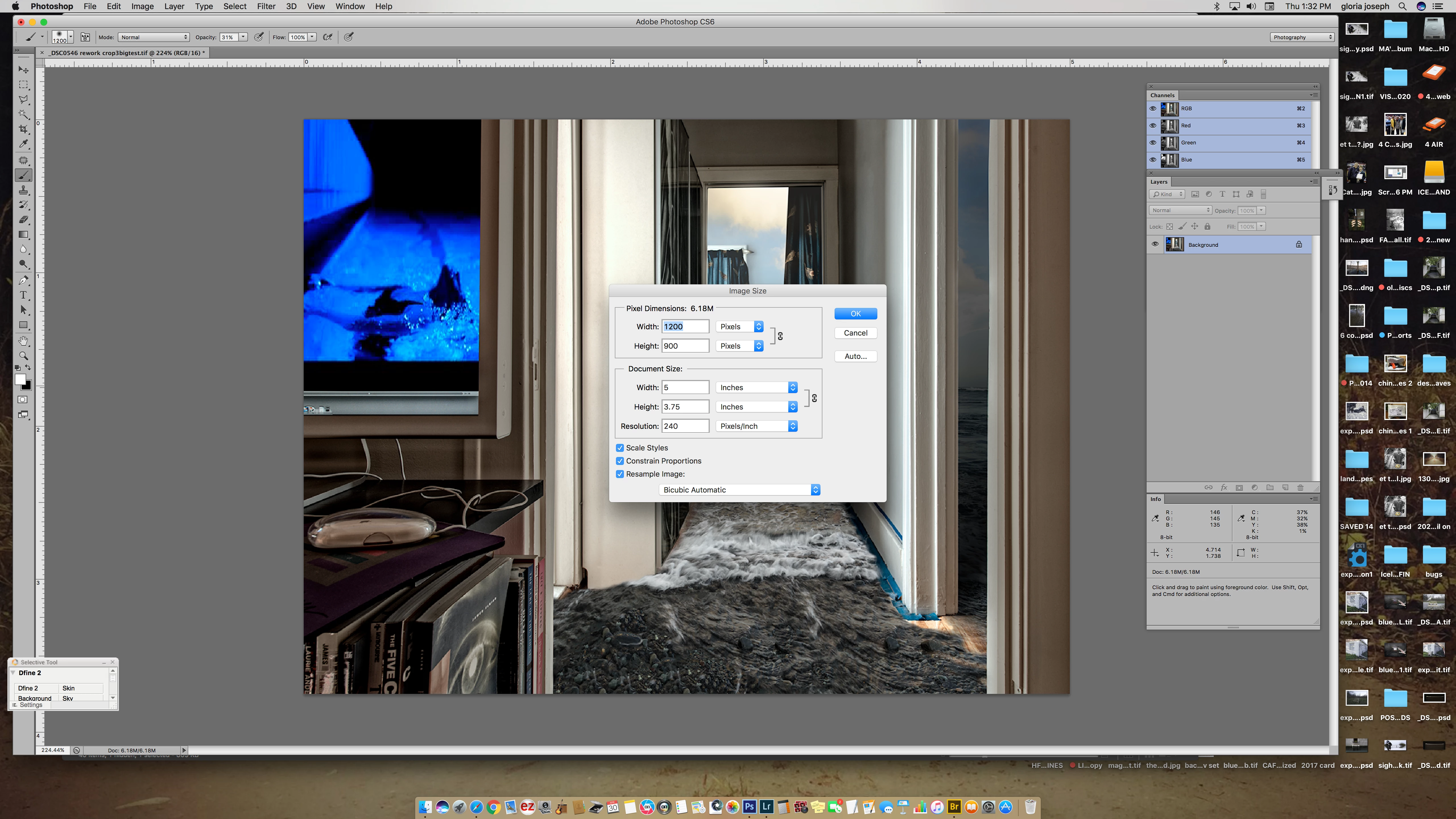 • Use the pixel width and height to reduce the pixel dimensions to the CaFE requirement of 1200 pixels minimum. (Large originals may end up more than 5MB as a JPEG.)