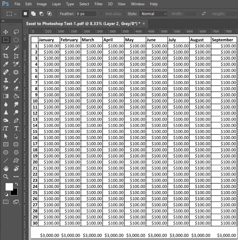 I have Photoshop CS3. I just want to import a table from excel into a 6"x10" poster in Photoshop but everytime I have done this it makes the text and lines blurry and you can not read the table. It needs to be clean for printing as there is other high def graphics in the poster.