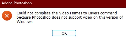 I suddenly have a problem with the Import video frames to layers function in Photoshop. It shows me the following error everytime I try to use it: