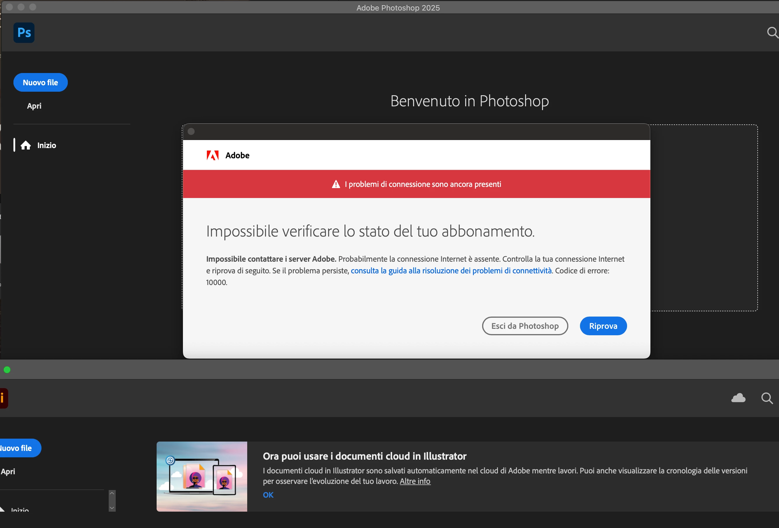 Terza volta, avevo aperto illustator e after, ma impossibile aprire photoshop
