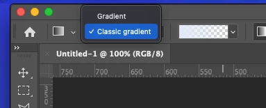 You can do it selecting the gradient tool going to the gradient tool top bar and from the drop down select "classic gradient" instead of "gradient"