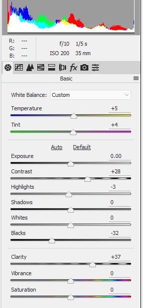 Hold down the alt key whilst moving the black slider to the left so that you just get the start of black clipping in very dark areas. Increase the contrast and clarity and finally in the fx tab move the de-haze slider to the right slightly