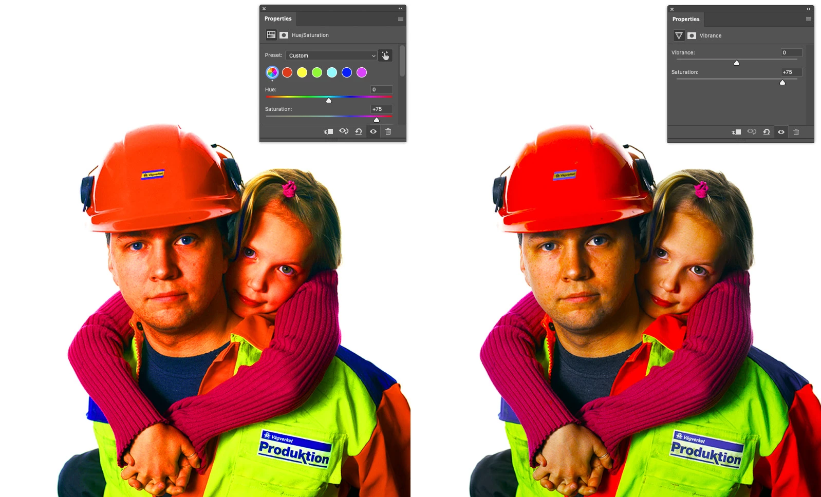 Minor differences are expected at high intensities due to math, layer stacking, and the way Photoshop blends/apply these adjustments.
