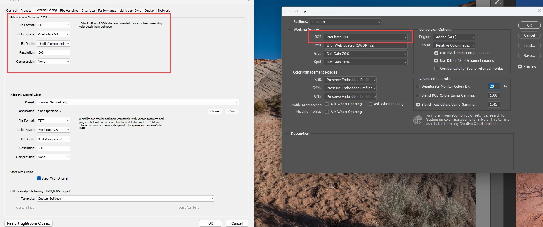 I am not sure what happened, but I noticed that unprocessed images look different between LR and Photoshop. In the image below the left one in LR and the right one in Photoshop. The correct color is in LR image. LR profile set to Adobe Color. No LUTs or presets are being used. Adobe color space set to Adobe RGB 1998. I recently reinstalled both applications. Any ideas what setting I am missing, to make sure that photoshop display the same color?