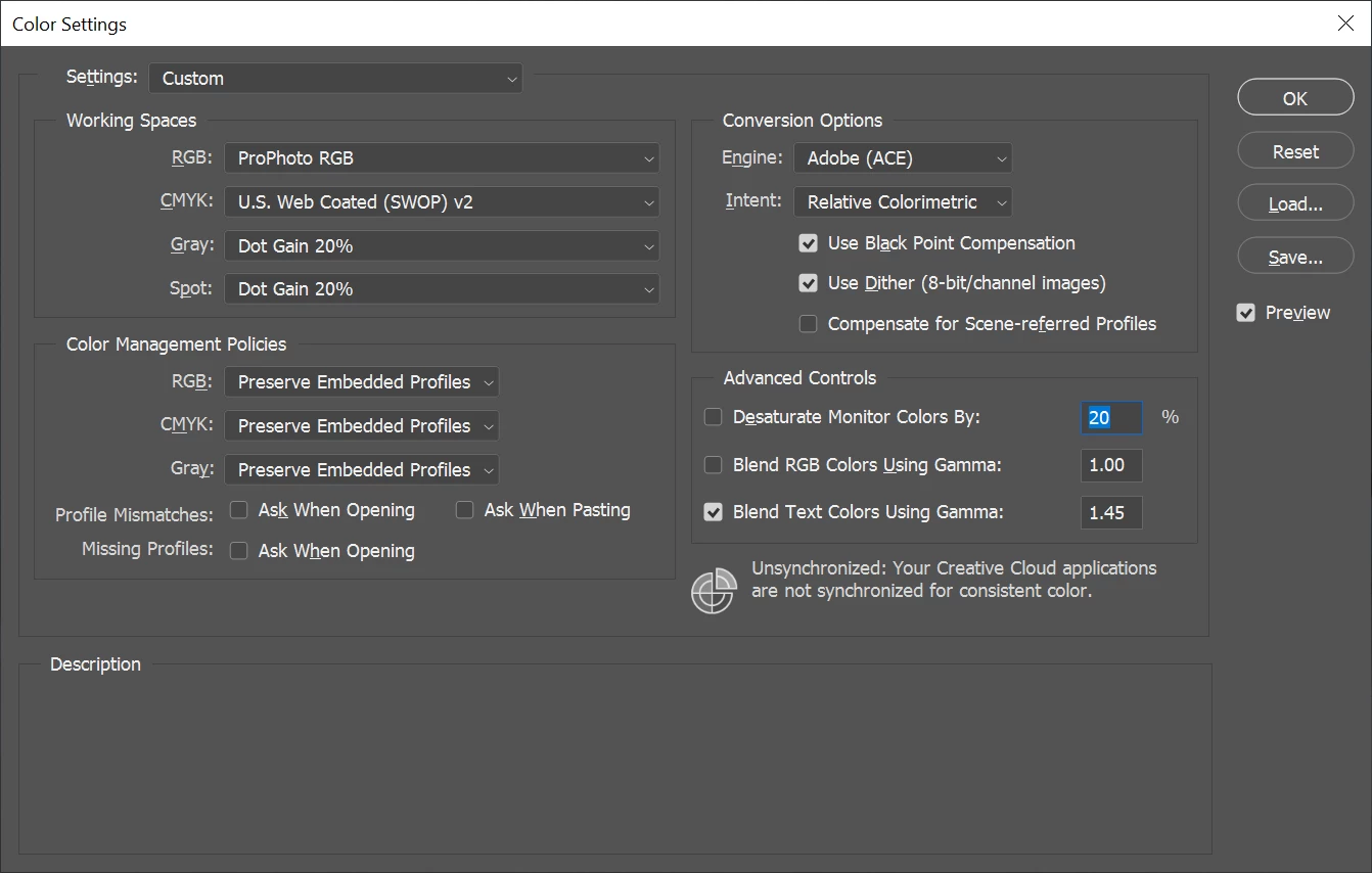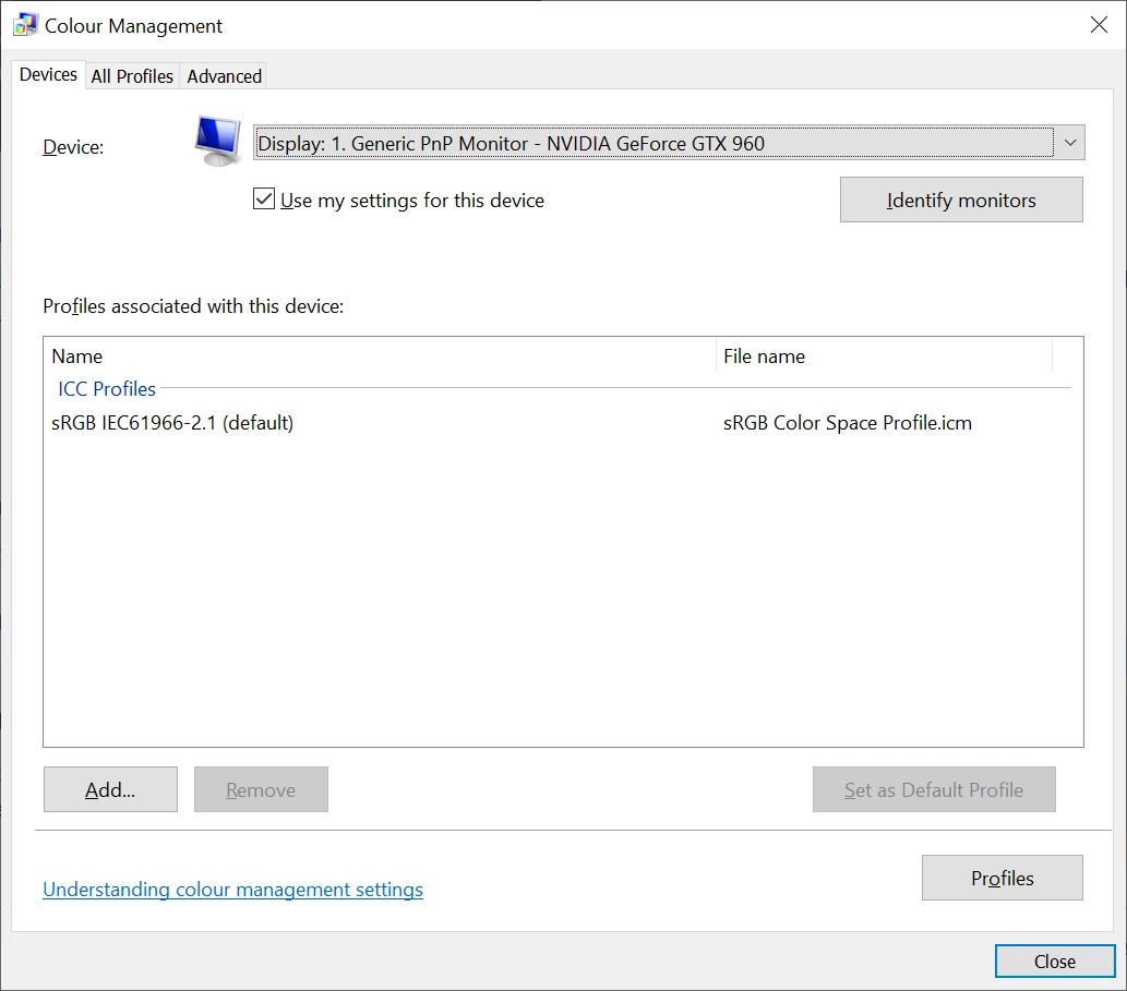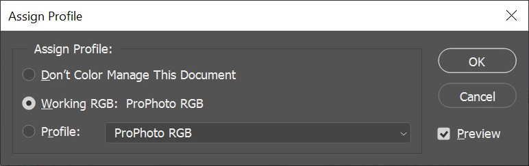 For completeness here is a screenshot of the profile that I have assigned in Photoshop: