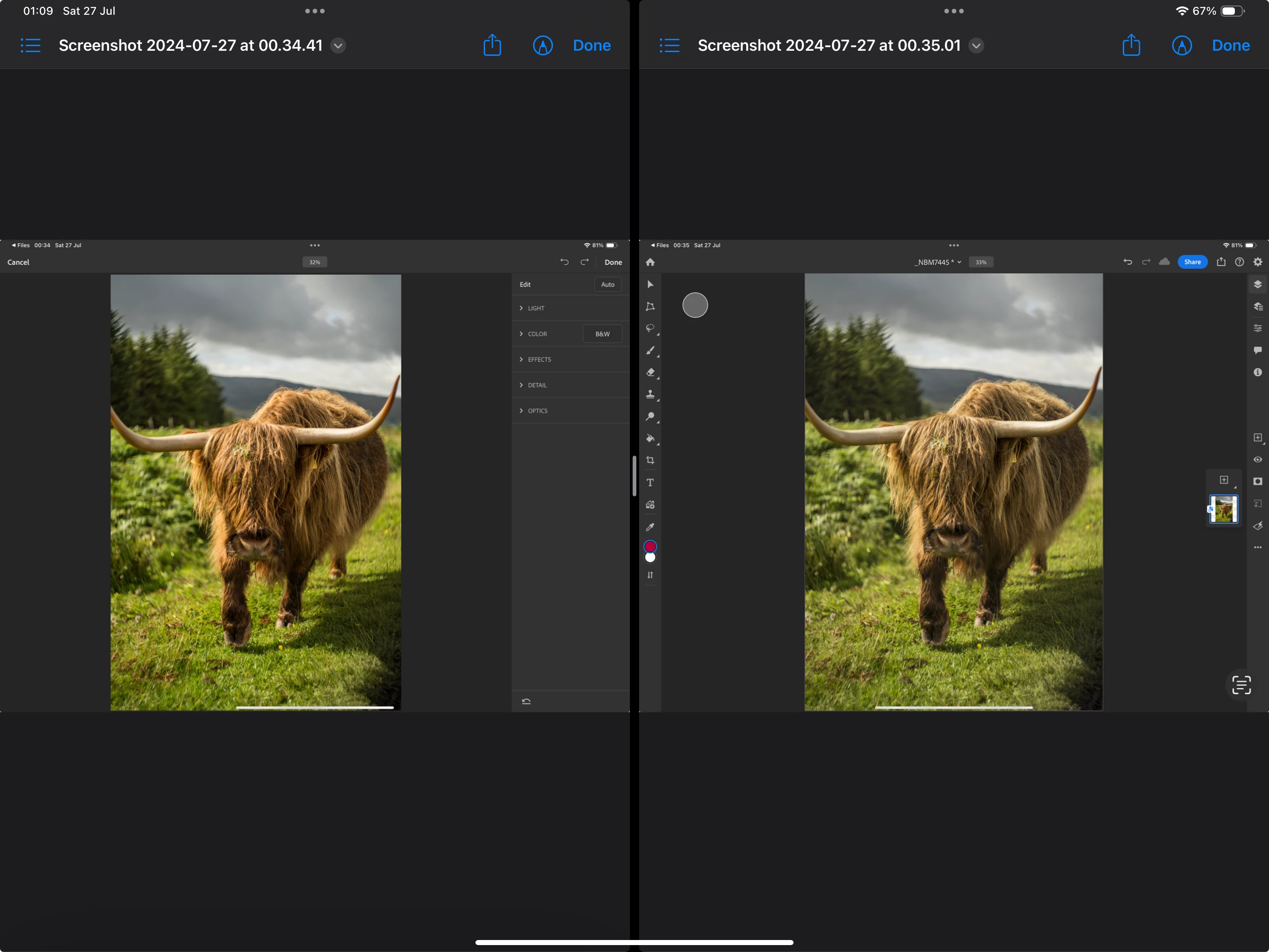 Hi, I've opened a raw file (from sony a7iii) in camera raw on my ipad pro, made some edits and then imported it into photoshop - however the image looks different to what I was expecting, its washed out compared to the camera raw image edit. If I send it back to camera raw it reverts to a deeper, more saturated image. If feels like a colour space issue but I can't find any settings to adjust it. Please advise.