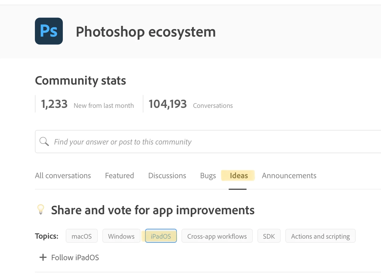 I get the impression that there are no active resources dedicated to IPad Photoshop. The rate of feature releases suggests it part time single FTE at best. Maybe Adobe should consider opening development up to the community if they are no longer interested in it's future. Thoughts?