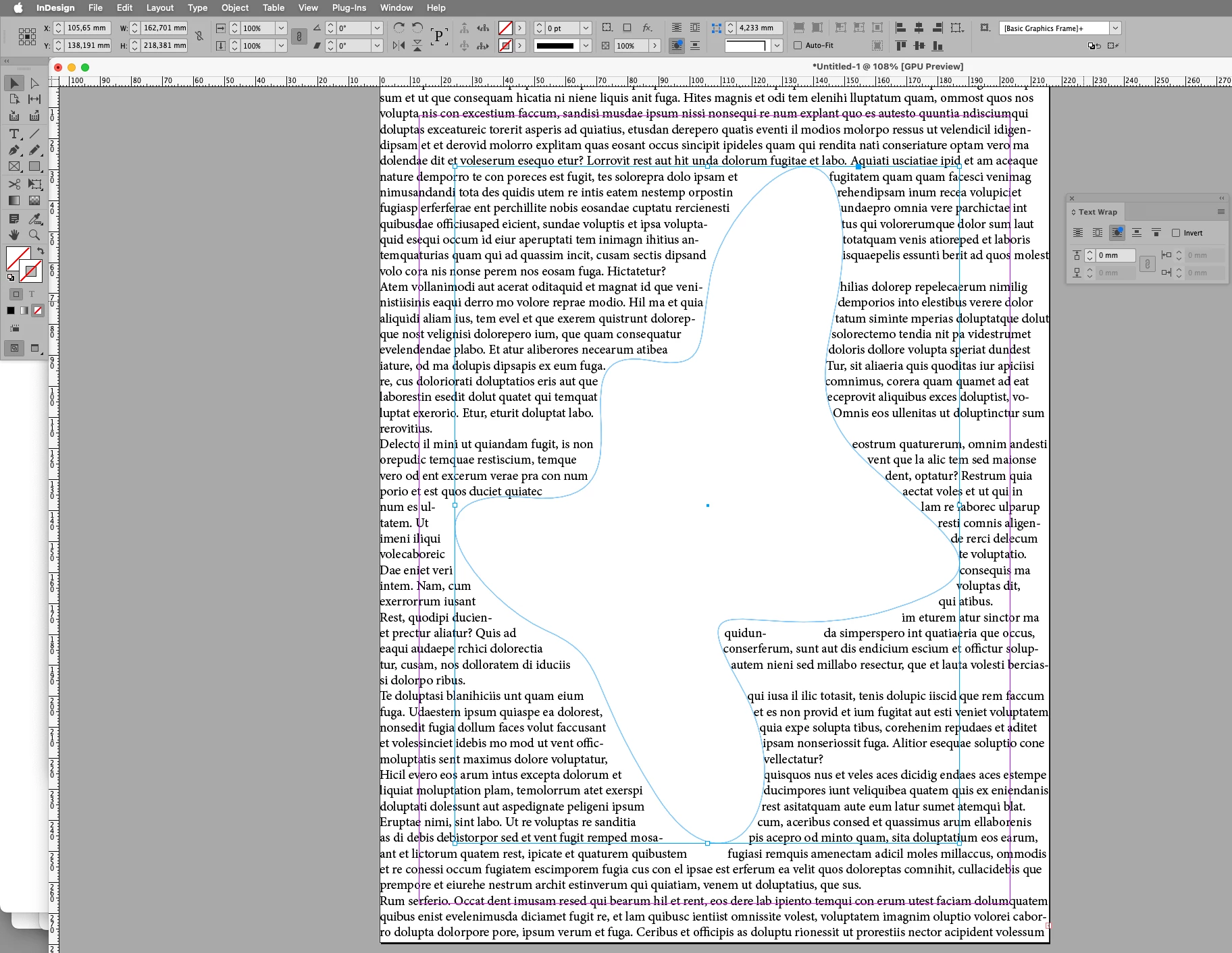 The aim is for the text to fill the page from left to right and top to bottom, while ignoring the subject of the image!