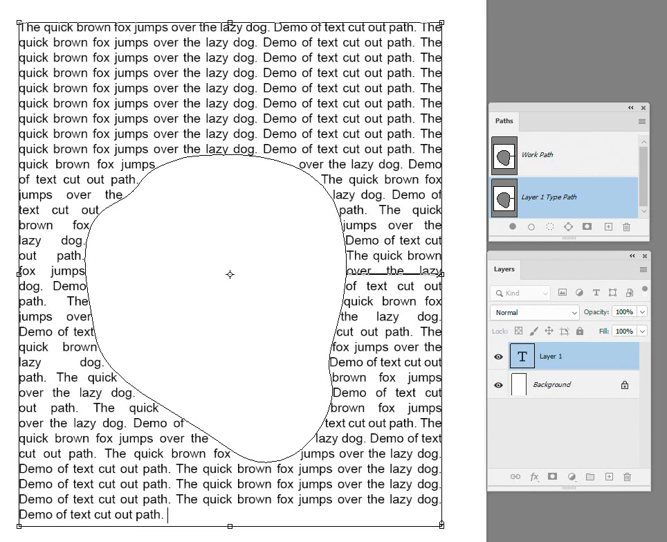 I can easily create a text box that follows the outline of the subject of an image, but Photoshop won't let me do this: