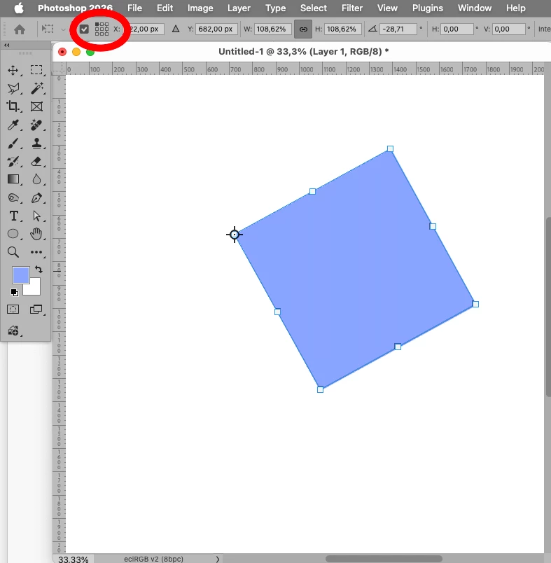 Is it possible to fix a point and then rotate a transform box around that fixed point