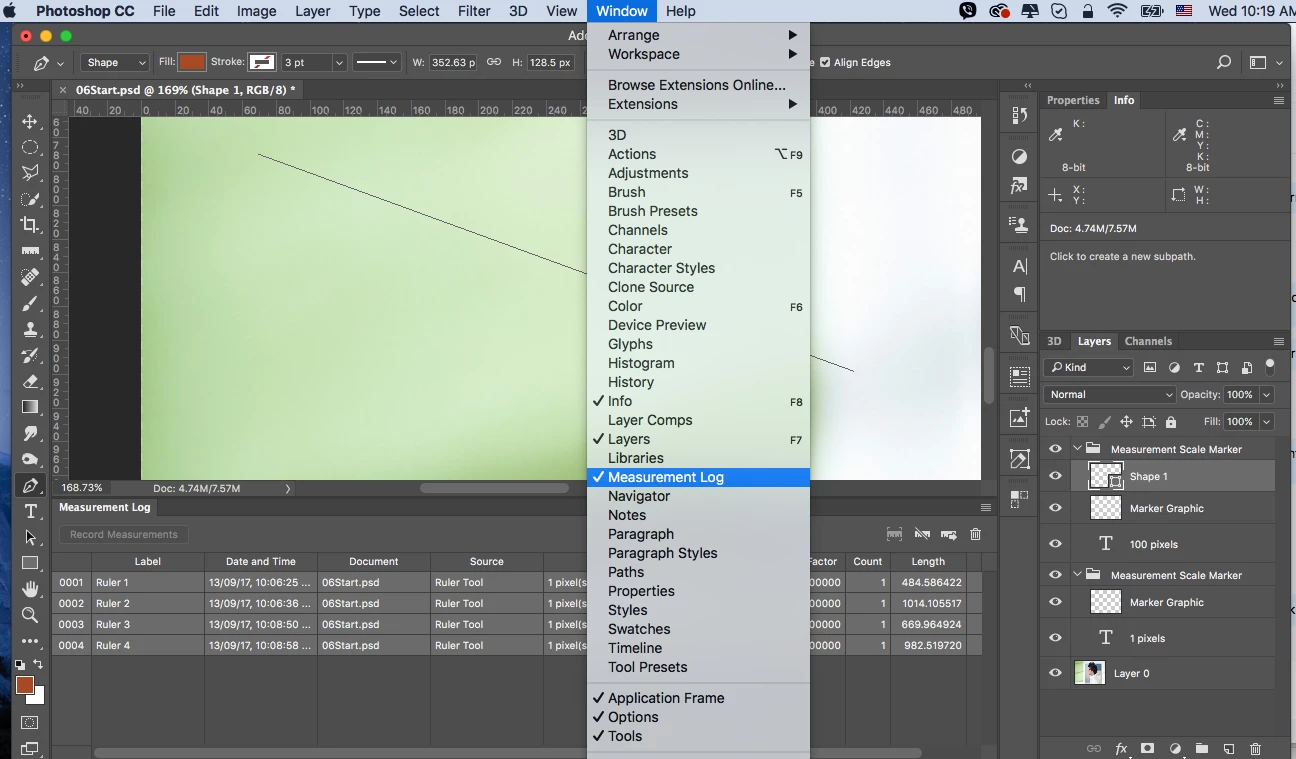 How do I measure two separate lines simultaneously in photoshop?