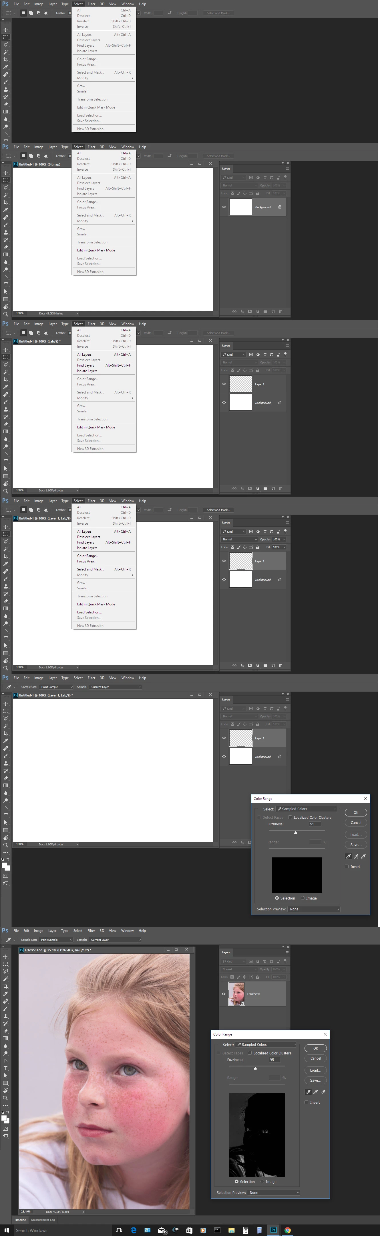 Select> Color Range is grayed out. I tried to reset the Mode from 32 bit to both 8 and 16 bit but when I do that, up comes Camera Raw instead with no change in bit level. I reset the possibly hidden tools, made sure I was in Essentials workspace, whatever suggestions I could find in the Help pages. No good. Am I encountering a program bug or corruption and if so How to normalize the program?