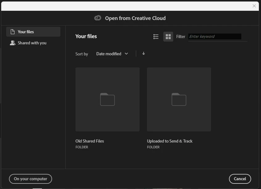 I have Default File Location set to "On your computer" but am still seeing the Adobe Cloud window pop up when I select File > Open. Is there a way to set "open from computer" as the default or to disable this screen? Thx