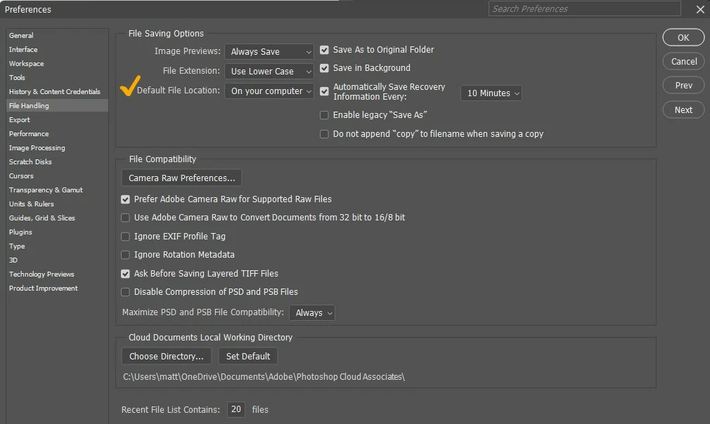 Is there a way to disable this Adobe Cloud default when opening a file?