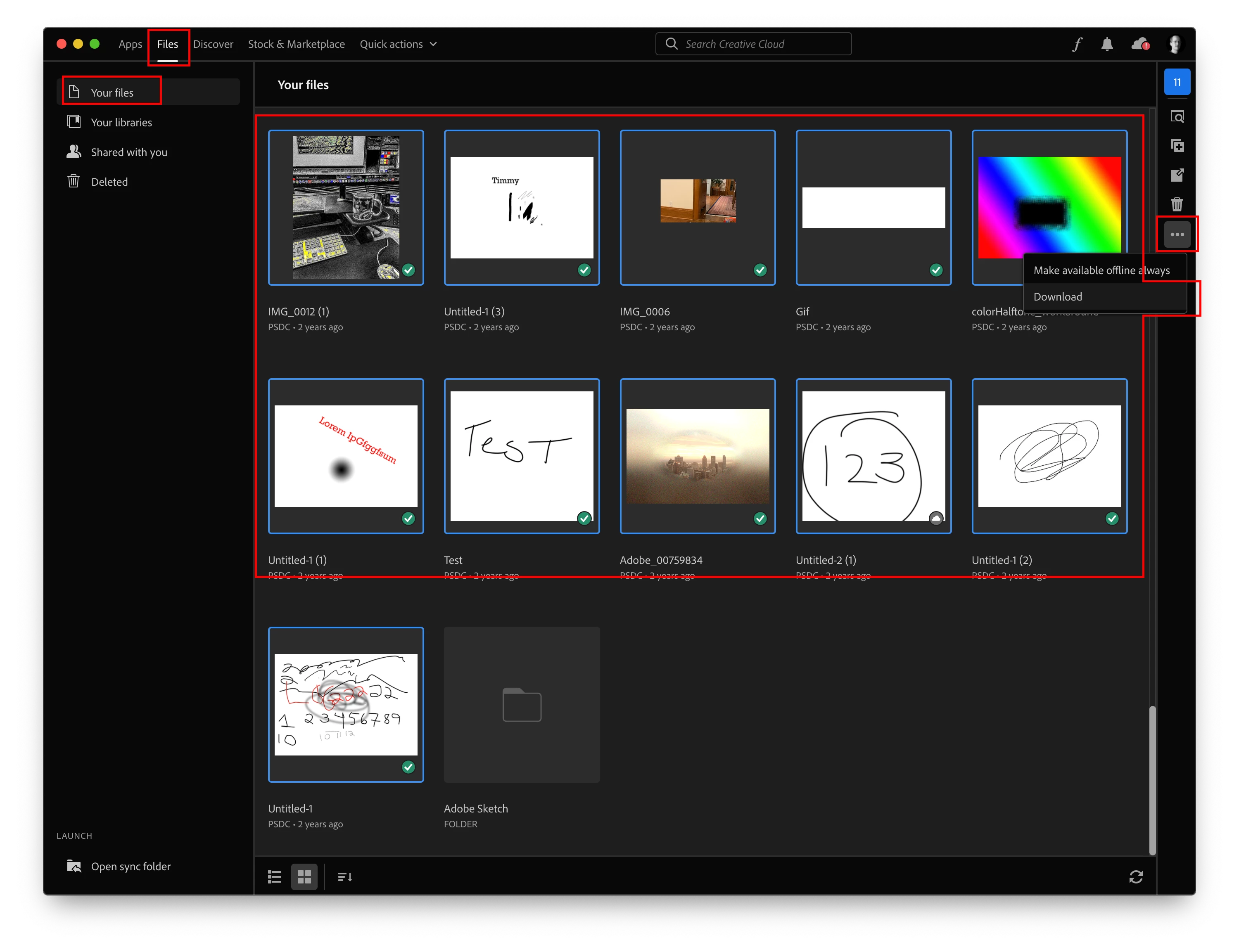 Is there a way to download all the photoshop projects and images at once from cloud to the computer?